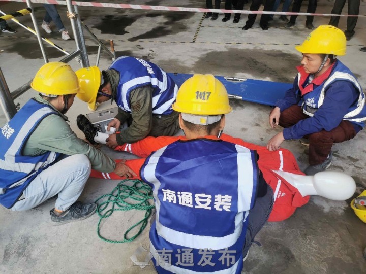 “報(bào)告總指揮,臨時(shí)停電造成普賢路站施工人員不小心從腳手架上墜落,請(qǐng)指示。” 26日,軌道公司在1號(hào)線一期工程機(jī)電安裝03標(biāo)開(kāi)展了高處墜落應(yīng)急演練。該機(jī)電安裝標(biāo)段是中鐵十一局集團(tuán)和南通安裝集團(tuán)聯(lián)合體項(xiàng)目,提高南通軌道交通工程參建人員安全意識(shí)以及現(xiàn)場(chǎng)施工人員應(yīng)對(duì)高空作業(yè)突發(fā)事件的應(yīng)急處理能力。